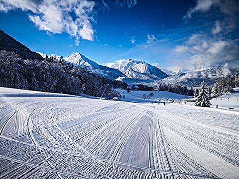 Schneesicherheit im Skiurlaub ist wichtig. Hier in Berchtesgaden finden Sie noch immer viel Naturschnee. Die Skigebiete ergänzen den Naturschnee. Die Pisten sind gut präpariert. Die Pisten eignen sich gut für den Familienskiurlaub hier in Bayern. Die kompakten Skigebiete sind ideal für den Skiurlaub mit der Familie. Hier kann man sich nicht verlieren. Der Ausblick von den Skigebieten in die Berge des Nationalpark Berchtesgaden ist einmalig. Für den sportlich ambitionierten Skiurlauber bietet die Skischule Berchtesgaden am Obersalzberg Skikurse für Kinder oder Erwachsene an. Auch ein Skiverleih sorgt für die schönsten Skierlebnisse mit bestem Material. Die aktuelle Skiausrüstung der namhaften Hersteller werden von der Skischule perfekt auf Sie abgestimmt.