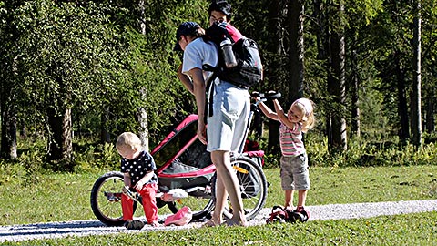 Mit den Kleinsten kann man natürlich noch keine anstrengenden Wanderungen durchführen. Der oben bereits angeführte Märchenpfad ist dagegen Ideal für die Kleinsten. Draußen im Wald zum Knusperhäuschen von Hänsel und Gretel schleichen und sich hier die Geschichte von Mama und Papa vorlesen lassen. Schöner geht es für die Kleinen wirklich nicht. Für die Kleinen sind auch Wanderungen entlang der Köngisseer Ache oder entlang des Soleleitungsweges sehr geeignet. Am Soleleitungsweg zum Beispiel können die kleinen durch die alten Holzrohre hindurchsehen oder durch einen alten Stollen flitzen, während die Eltern in der gleichen Zeit außen herum wandern müssen oder ebenfalls gebückt durch den Stollen gehen. Nahezu ideal für die ganz kleinen ist auch eine Wanderung rund um den Hintersee. Hier gibt es viele kleine Zauberpfade für die Kleinen und wenn das Kind 3 Tannen- oder Fichtenzapfen gefunden hat, dann gibt es zur Belohnung vielleicht noch ein Eis.