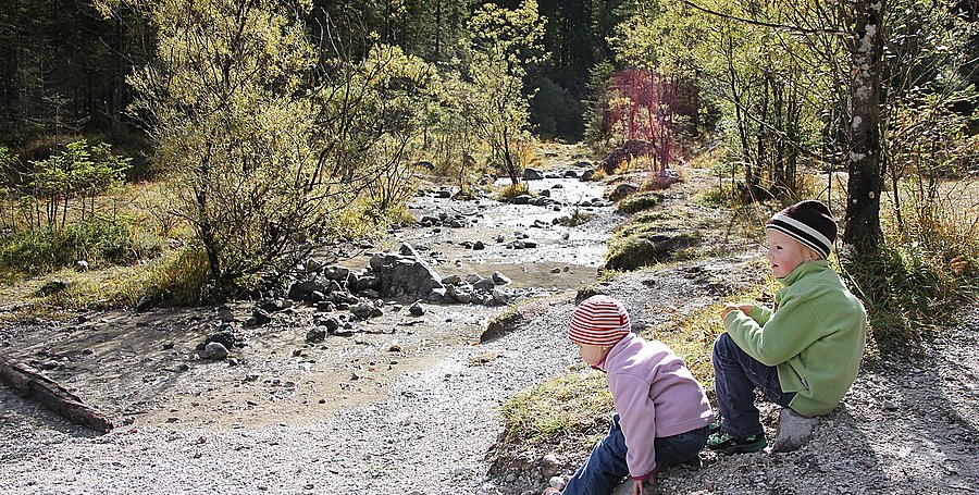 Je nach Alter und Fitness können die Kinder dann auch schon etwas weitere Touren gehen. Hier sind Sie als Eltern gefragt. Sie müssen einschätzen was Ihr Kind tatsächlich leisten kann um auch noch Spaß zu haben. Meine 5-jährige Tochter ist, ganz egal wo, von Wasser begeistert. Es gibt nichts schöneres als entlang eines Gewässers zu wandern und dann die Kinder an einer geeigneten Stelle ausgiebig im Wasser spielen zu lassen. Gerne gehen wir mit Ihr in die Almbachklamm oder Wimbachklamm. Nehmen Sie sich Zeit, damit die Kinder das Spielen bei den Wanderpausen auch richtig genießen können. Verweilen Sie auch einmal zwischen den Pausen, wenn Ihr Kind sich einmal so richtig einen echten Bergsalamander oder eine Kuh betrachten möchte. Kinder in diesem Alter sind auch begeistert, wenn Sie über, liegende, abgestorbene Bäume im Nationalpark kraxeln dürfen und vieles weitere mehr!