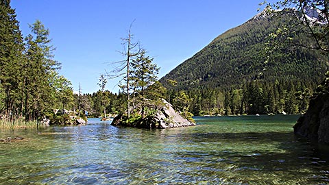 Im Bergsteigerdorf Ramsau kann man Natur pur erleben. Das Ziel für Wanderer und Bergsteiger ist das Klausbachtal. Zu einer leichten Wanderung lädt der Hintersee ein.