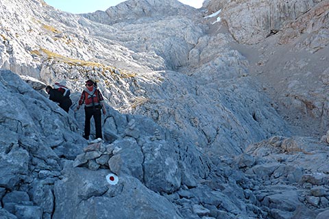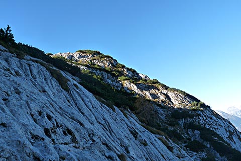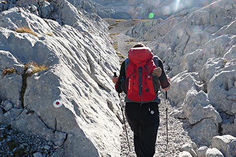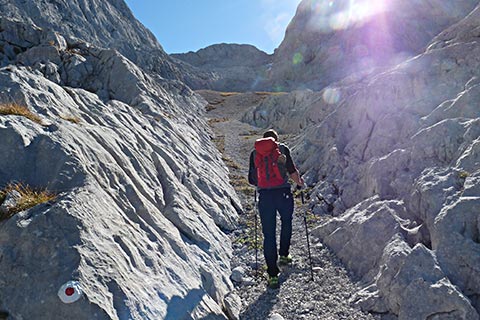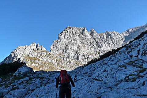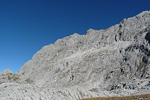 Ab jetzt ist Trittsicherheit, gute Kondition und bergsteigerisches Können gefragt. Ungeübte Bergsteiger sollten hier nicht weiter gehen.