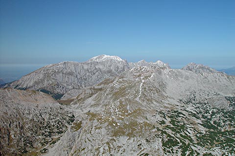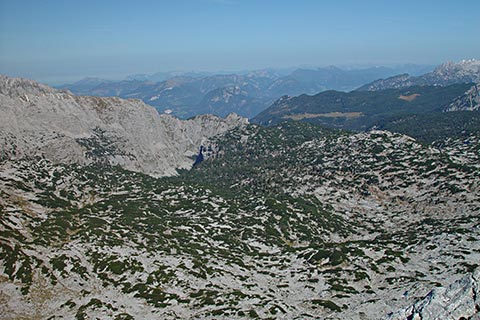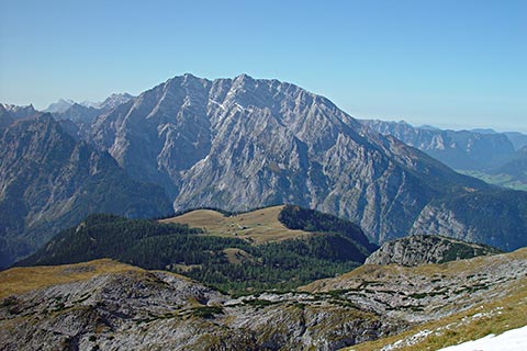 Zurück ins Hochgschirr. Nun rechts zum Seeleinsee rauf auf den Schneibstein. Vom Schneibstein aus beginnt dann der Abstieg Richtung Jenner oder Bluntau-Tal (Golling) Salzburger Land. Auf dem Rückweg finden sich einige Almen, die zur Einkehr einladen. Es gibt doch nichts schöneres als bei einem Glas Michl, einem kühlen Bier und einem Käsebrot oder Speckbrot über die Erlebnisse am Berg zu sprechen.