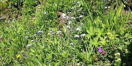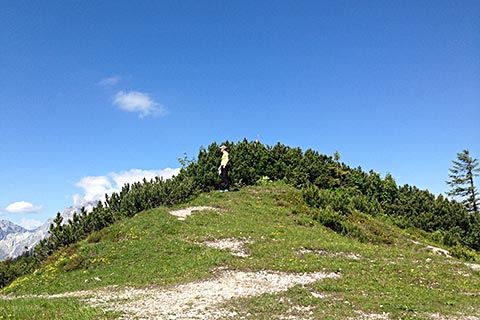Zuerst erreichen Sie den Zielauslauf des Krautkaserliftes (im Winter). Blicken Sie an dieser Stelle nach links. Entlang des Gebietes der Skiabfahrt führt ein Weg hinauf bis zur Bergstation des Krautkaserliftes am Jenner.