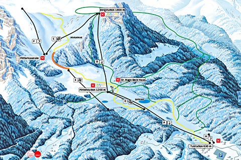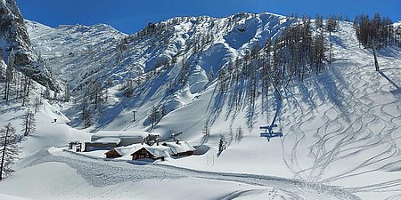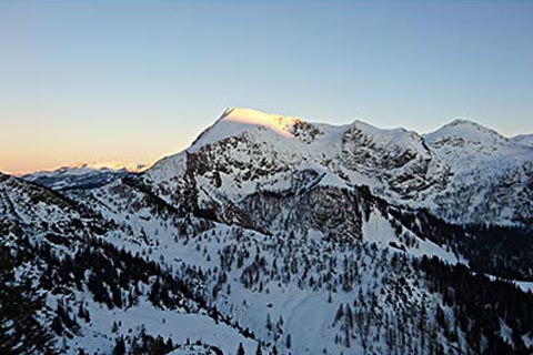 Diese Variante kann auch vom Parkplatz am Königssee aus gestartet werden. Um Zeit zu sparen können sie als Tourengeher auch mit der Jennerbahn bis zur Mittelstation fahren und dort die TourenSki anschnallen.