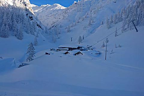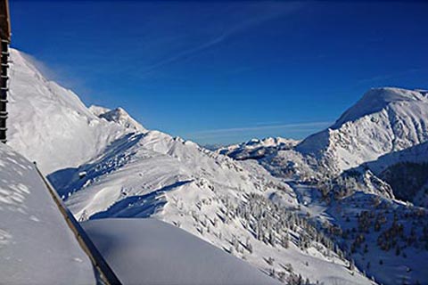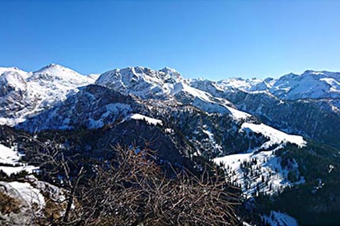 Vom Parkplatz Hinterbrand über die Mittelstation Richtung Königsbachalm und dann über Königstal zum Schneibsteinhaus / Stahlhaus zum Jenner. Einfache Tour, Konditionell anspruchsvoller, Abfahrt über Skipiste Aufstieg ca. 2 Stunden.