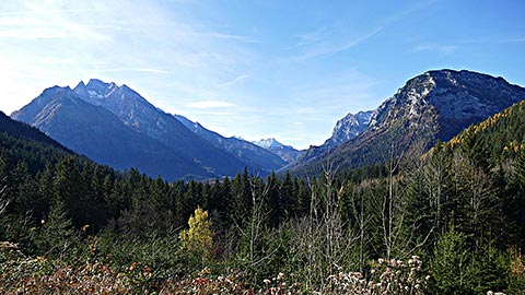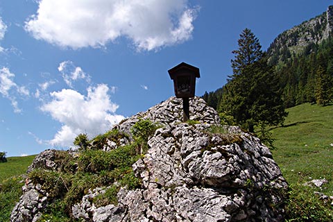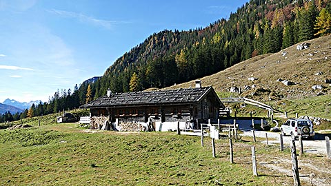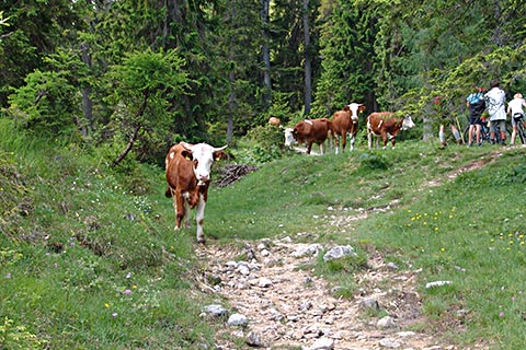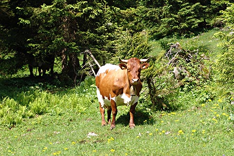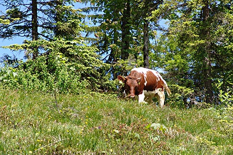 Oben auf der Alm angekommen können Sie die Flora und Fauna der Alm betrachten. Bei jeder Pause sollte man auch etwas gegen Hunger und Durst tun. Bei den bewirtschafteten Almen bekommt man in der Regel auch eine Brotzeit und etwas zu trinken.