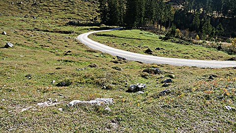 Der Weg ist so breit ausgebaut. Auf diesem breiten Weg können die Landwirte auch mit Ihren Traktoren zur Alm fahren. Die Alm wird von drei einheimischen Landwirten bewirtschaftet.