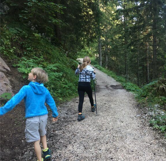 Planen Sie deutlich mehr Zeit ein. Bleiben Sie stehen bei einem Stein zum Klettern, betrachten Sie einen Felsen. Bleiben Sie an einem kleinen Wildbach stehen und lassen Sie die Kinder am Wasser spielen.